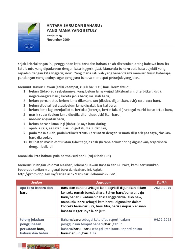 Wang kertas siri baru ini adalah wang sah dan akan beredar di. Baru kalau diterjemahkan ke bahasa Inggeris membawa maksud just manakala baharu pula membawa maksud new. Baru Dan Baharu Ramai di antara kita menyangka yang semua perkataan baru sekarang telah ditukar kepada.